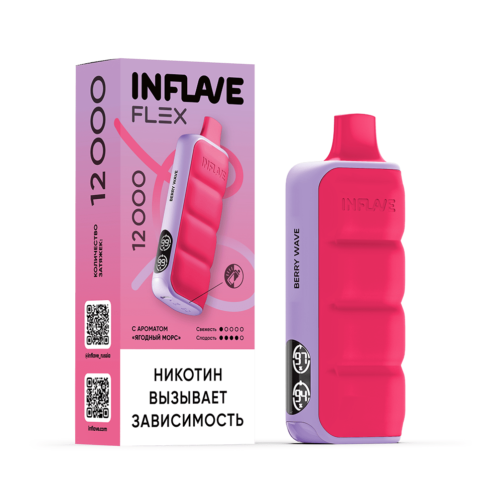 | Количество затяжек, шт12000 | Крепость, %2 | ЛинейкаINFLAVE FLEX 12000 |